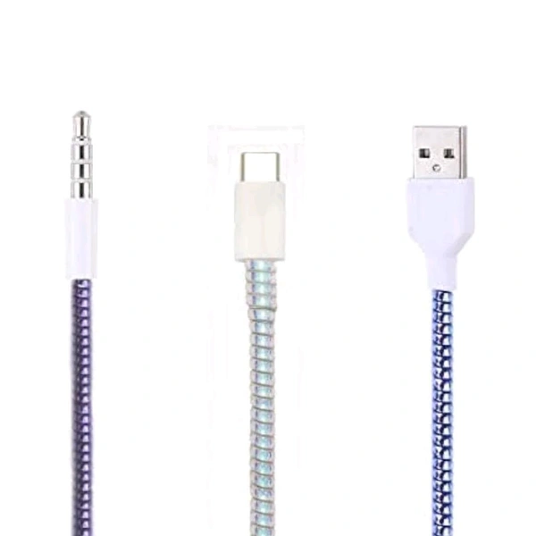 Premium Shining Mobile Earphone Charging And Data Cable Protecting Spring Cable (Shining Multicolor)